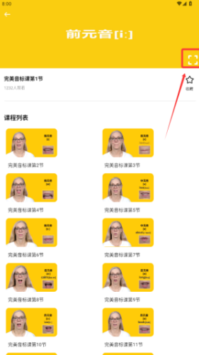 3、在第三张图课程详情页右上角找到被红箭头指向的收藏加号,点击这个图标将当前音标课程添加到个人收藏夹。