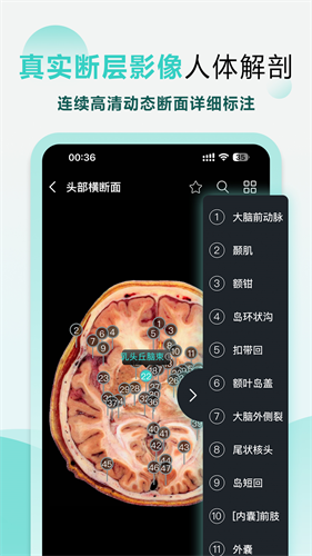 3、千张连续断层高清解剖图,更好的视觉享受,复杂疑难结构一目了然,随时随地打开学习。