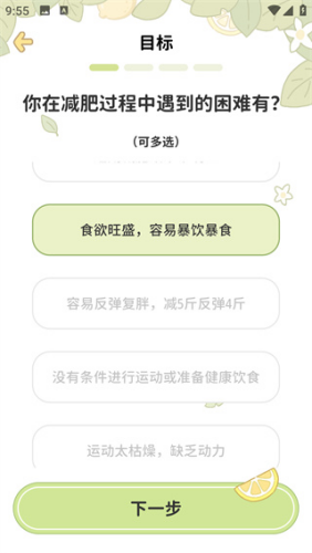 3、进入目标输入页面,按照页面提示填写自己的目标减肥。