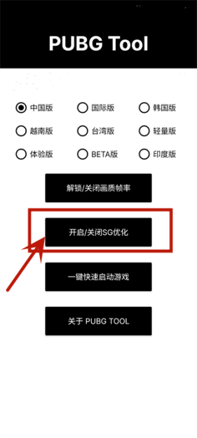点击『开启/关闭SG优化』,再点击『解锁/关闭画质帧率』