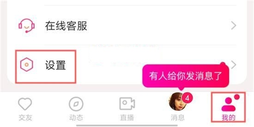 1.打开你的本地陌交友App,个人中心点击设置功能。
