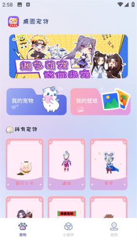 2、进入首页,可以看到我的宠物、我的壁纸选项,下方还有各种宠物供大家选择。