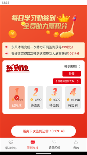 2、去进行日常的打卡吧,获得一些积分,轻松解锁一些需要的功能名片。