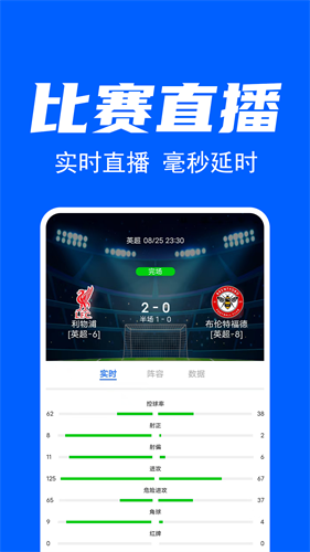 4、具备实时数据追踪系统动态更新比赛中各项技术统计与球员数据。
