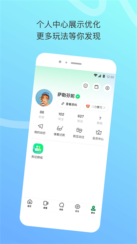 1、附近群组:看看附近群组,找到兴趣相投的人。