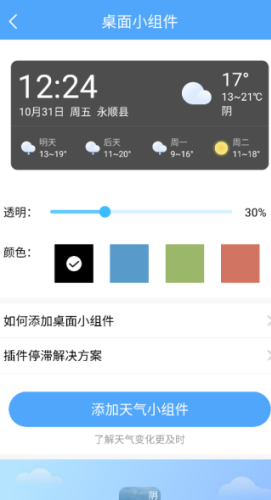 2、来到桌面小组件设置界面,直接点添加天气小组件。