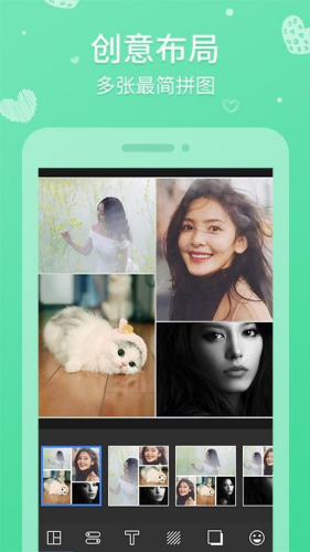 1、极致流畅的交互体验,简洁干净到令人舒服的界面,上百款拼图模板和海报布局,满足你所有的拼图要求。