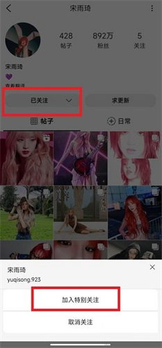 2、点击博主头像,进入博主的个人主页,先关注博主,之后再次点击 “已关注”,再点击 “加入特别关注”。