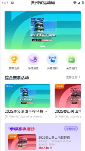 1、赛事中心:涵盖马拉松、三大球等15类运动赛事,支持在线报名和电子参赛包领取。