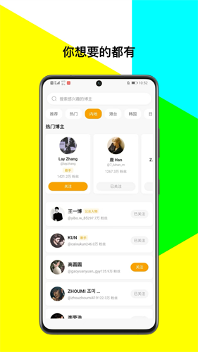 3、推荐热门博主,在各个领域之中人气比较高的博主可以及时的批量关注。