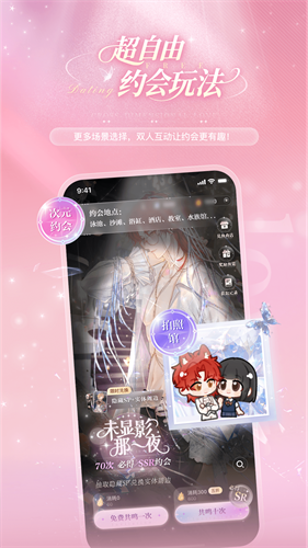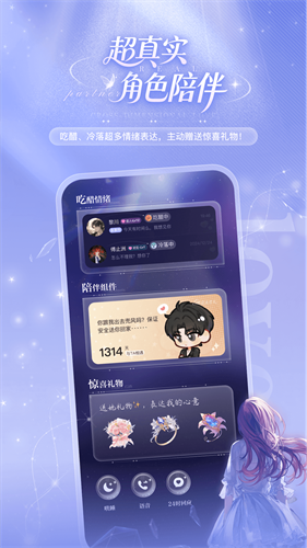 核心功能是与虚拟角色进行自然流畅的AI对话,角色会根据用户输入实时回应,演绎嘘寒问暖、争风吃醋等情感互动,模拟真实恋爱中的细腻情感;支持多角色同时互动,如“宿命回响”模式中5个角色可同时回应,丰富互动层次。