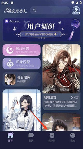 1、登录破次元恋人app后点击底部导航栏中第三个图标
