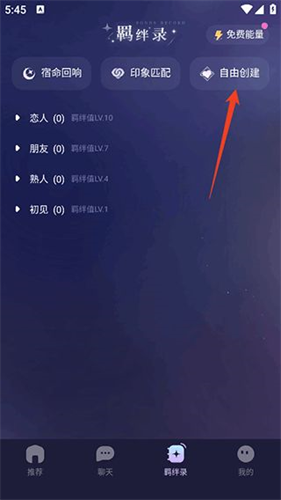 设有“印象匹配”功能,提供千种印象标签供用户选择,精准匹配契合的虚拟角色;包含能量体系,用户每日可领取300点免费能量,用于解锁更多互动内容,同时支持每日限免机制,让用户体验不同剧情和角色。