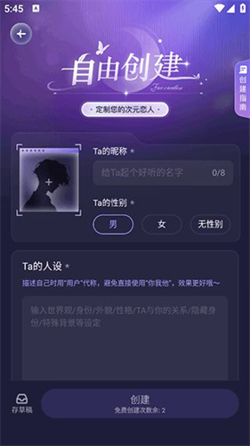 1、您可以创建自己的原始角色,并通过打开应用程序来设置自己的角色。