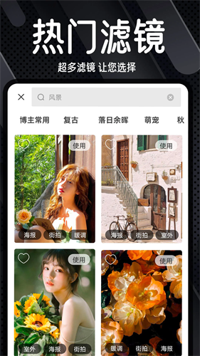 应用有海量滤镜,涵盖各个风格,应有尽有,满足用户需求。