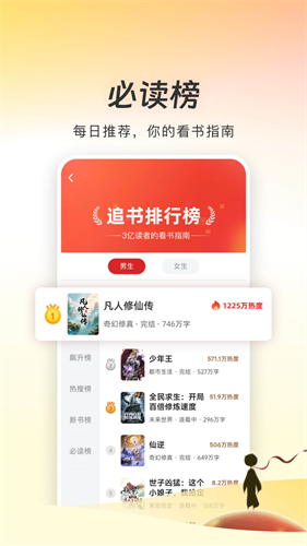 追书神器免费版无广告版是一款专为书迷打造的阅读神器,应用对男频女频做了清晰的分类导航,男生爱看的玄幻争霸、都市异能,女生偏好的甜宠言情、穿越宫斗,全都被安排得明明白白,找书过程变得异常轻松,所有内容都无需跳转搜索,直接站内就能随心畅读。独特的追更机制堪称亮点,当你收藏的书籍有更新时,系统会像一位贴心的书店老板那样及时通知你,确保你不会错过任何精彩的剧情转折。追书神器免费版无广告版的界面清爽简洁,翻页流畅不卡顿,加载速度也做了深度优化,没有复杂的功能堆砌,打开就是干净的阅读界面,翻页响应迅速,仿佛一本随身携带的智能书架,加上流畅感配合精准的个性化推荐,很容易让人一打开就沉浸其中。如果你是喜欢追更网文和小说的用户,那可别错过这款应用。