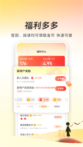 5、每天登录签到、看书都可以获得奖励,给你惊喜福利源源不断。