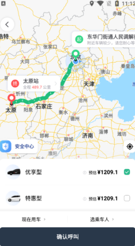 3、选择好后打车就可以看到价格与车型,点击确认呼叫即可。