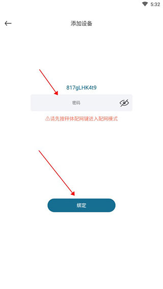 5、输入WiFi密码,点击绑定,然后耐心等待链接即可。