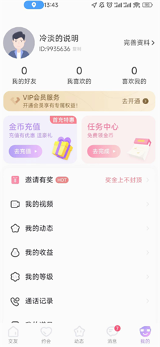 3、每位用户注册后都需要经过身份证认证才能开启交友,可以通过搜索附近的人。