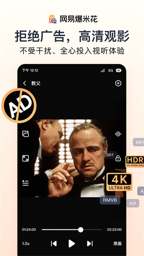 网易爆米花app官方版是一款跨平台媒体管理神器,依托网易28年技术积累,它将影视资源整合、智能识别与多端同步能力融为一体,支持直连阿里云盘、百度网盘,兼容WebDAV与SMB协议,无论是NAS里的4K HDR大片,还是手机本地收藏的老剧集,都能一键导入并自动刮削海报、简介、评分等元数据,瞬间生成媲美流媒体平台的精美海报墙。最贴心的是,网易爆米花app官方版这款应用能直接读取阿里云盘、百度网盘的内容,不用下载就能在线播放,省流量又省空间。播放器内核强悍,兼容200余种音视频与字幕格式,流畅解码高码率影片毫无压力。无论是在手机上看半集,回家用电视接着看,进度都会自动同步,完全不用手动找位置。对于只想安安静静追剧看电影的人来说,这款由网易出品的应用,既靠谱又省心,妥妥的家庭娱乐小帮手。