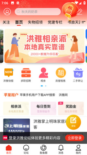洪雅论坛安卓版官网是专为洪雅人打造的一款本地社区手机客户端,致力于为洪雅用户提供便捷的生活交流空间和体贴的便民生活服务,每天有超过50万的同城用户查看本地新闻资讯、爆料最新八卦、分享本地美食、查找本地兼职工作、查询公交、天气,参与同城交友活动。这款软件的服务功能非常的强大,提供了资讯、社交、互动等各种服务内容,你可以在平台里了解更多的新闻信息,通过新闻资讯的阅读,对社会生活有更多的了解,满足你的生活需求,快速的进行使用,有需要的朋友现在就来下载吧。