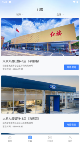 3、点击底部的门店板块,用户可以查看集团旗下各门店信息。