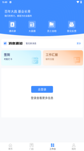 4、底部的工作台,用户可以登录并查看管理员工信息。