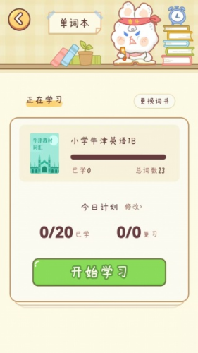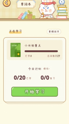 3、更换了词书之后,这里就能看到相关信息,大家直接点开始学习。