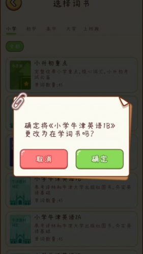 2、接下来选择需要的词书,会跳出这样的一个界面,大家直接点击确定。