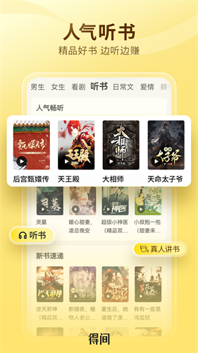 细腻的人声朗读,提供多种音色供你选择,解放双眼,随时随地听小说!