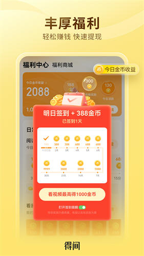看小说还能赚零花钱?没错!签到福利、阅读福利、睡前福利,前方福利高能,只要你来,我们就送不停!