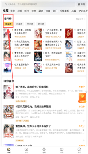 1、推荐排行小说,当自己不知道看什么小说的时候可以从排行榜之中进行选择。