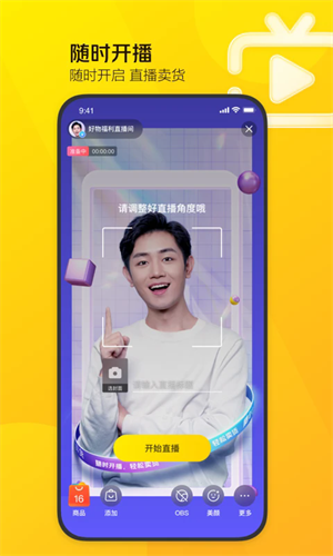 3、随时随地发起直播,一键开播,不受空间、设备限制,超清画质,清晰流畅,让你轻松开启直播卖货之旅!