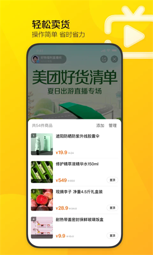 1、支持主播添加团购、魔盒券包、兑换券、门票、团单等多类型商品,提供抽奖互动多种营销玩法,让商品管理更方便,直播卖货更简单!