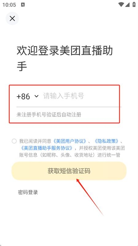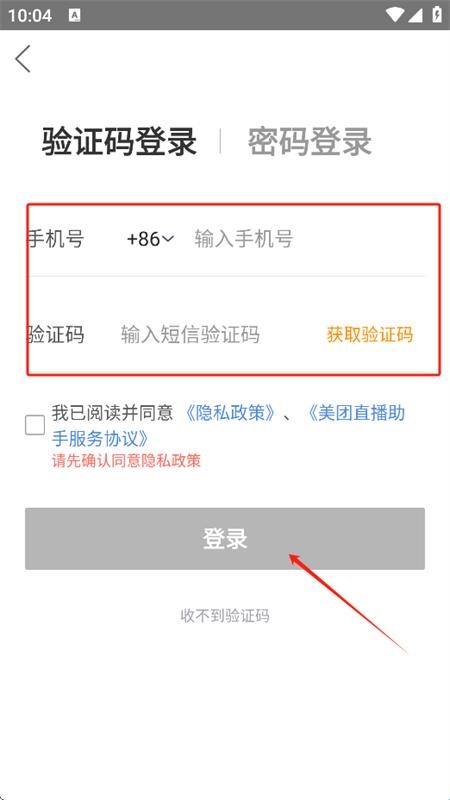 5、输入手机号和验证码可以快速注册登录,也可以选择账号密码进行登录。