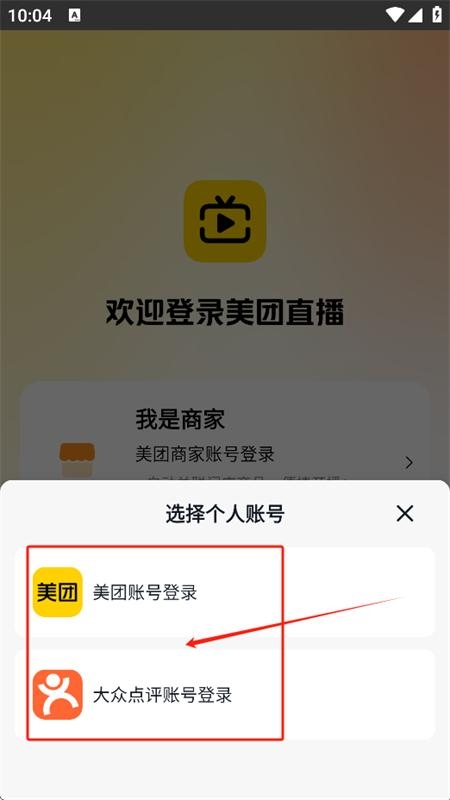 4、个人账号的可以选择美团账号登录或者大众点评账号登录。
