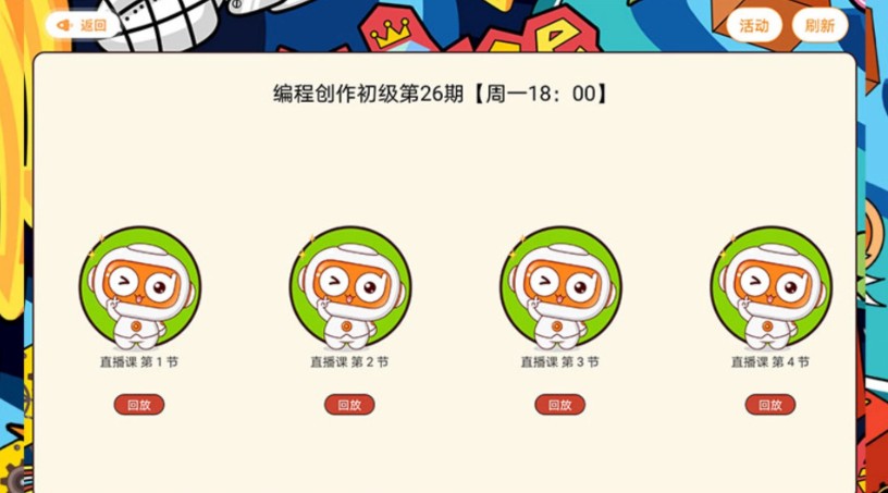 3、点击进入某一期课程后,可看到每节课图标,点击“回放”即可观看对应内容。