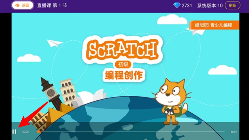 4、进入课程后点击左下角播放键,即可开始观看编程创作教学视频内容。