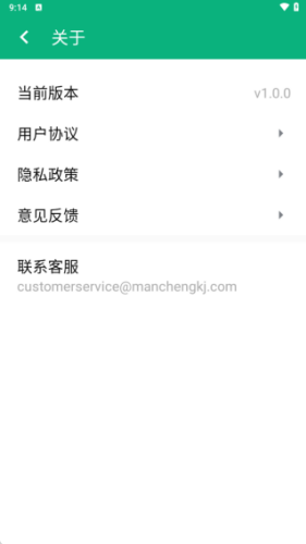3、点击首页右上角,进入关于,用户可以查看版本信息,也可以邮件联系软件官方客服。