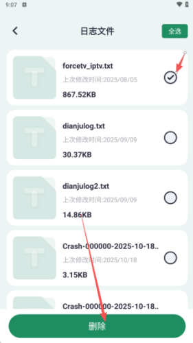 2、软件对手机文件进行扫描,之后用户可以选择需要清理的文件,点击删除。