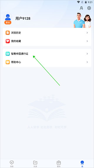 6、注册完成需到【我】页面点击【智教中国通行证】绑定。