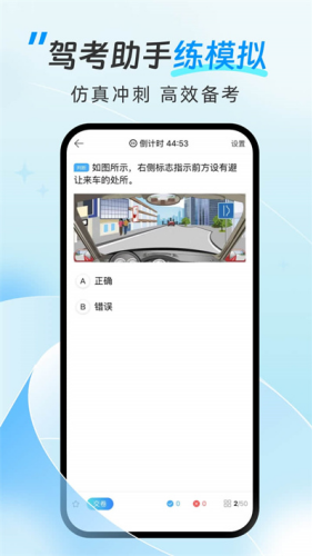 4、休息间歇,轻松巩固,快速拿证!百分百还原试题难度,模拟真实考试场景,让您轻松上阵,驾考无压力。