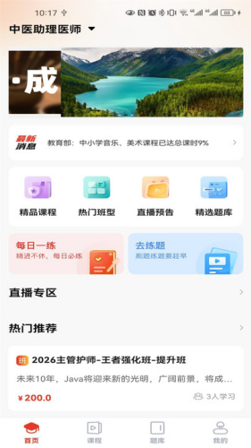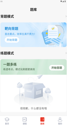 1、进入软件首页,这里有很多精品课程和题库可以供你练习。