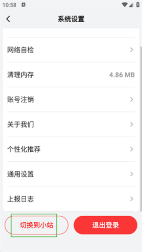 3、滑动至页面底部选择切换到小站功能,完成平台切换。