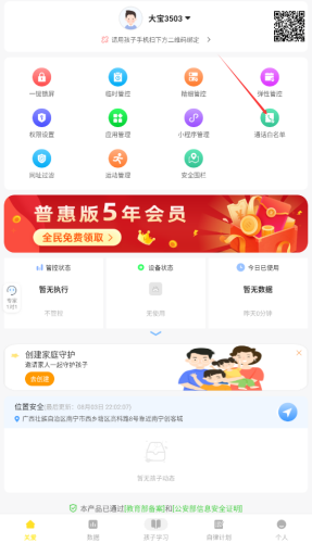 3、查看孩子数据中心,分析手机使用时长、高频应用等数据报表,了解孩子使用习惯和潜在问题。