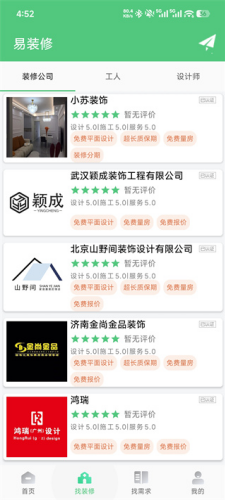 2、 找工人和公司:用户可以轻松找到专业的装修工人和靠谱的装修公司,满足不同的需求。