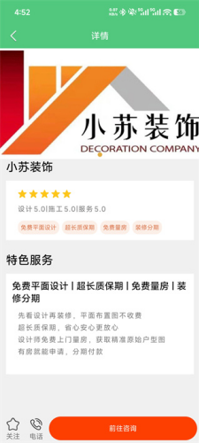 4、选定意向服务商后,可通过去咨询功能直接建立沟通渠道。