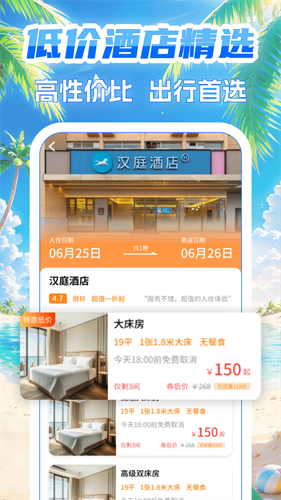 基于智能比价算法,自动筛选全网平台优惠房源,每日推荐高性价比特价房,涵盖经济型、连锁品牌及精品民宿,省钱更省心。