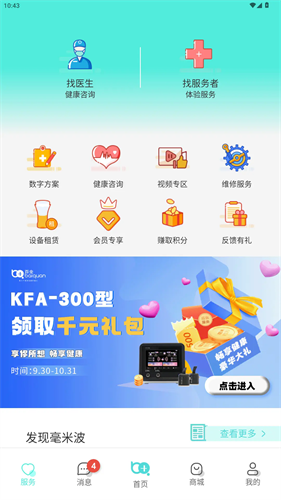 5、依托互联网技术提供医生专业健康咨询和个性化毫米波指导方案,提供兼具百全毫米波智能医疗器械产品、智能软件功能、个性化专业服务的服务运营平台。